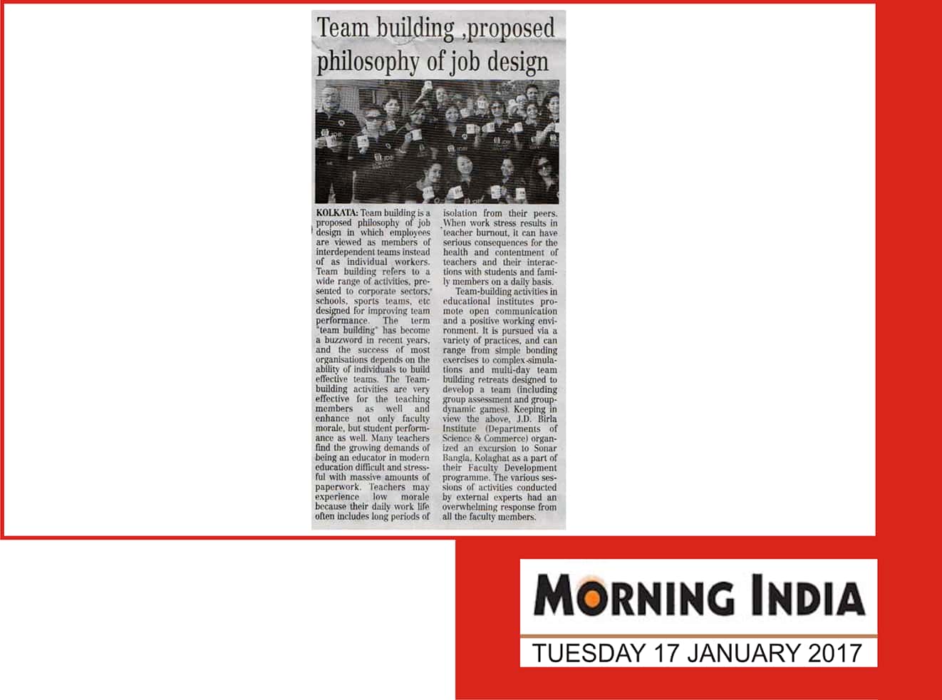 The department of management at JD Birla Institute (JDBI) recently organised a two-day online management development programme to spread awareness about the changing global trends. The event aimed to facilitate interaction between the middle and top-level corporate members and the market experts. There were around 36 participants from various corporate houses and the resource persons included digital entrepreneurs and AI practitioners from several organisations. The event provided a glimpse into the prospects and challenges of AI-enabled business. The JDBI also spruced up campus during the pandemic. Its satellite campus—which houses the management department—has undergone a makeover. Principal Deepali Singhee said her team spent days planning the beautification mainly by recycling available materials at a minimal cost. The walls have been decorated with motivational quotes, a portion being dedicated to former students who have been achievers. There is also a new adda zone for the students. Vidya Mandir Society secretary-general Brig. V. N. Chaturvedi recently inaugurated the Learning Resource Centre with a new fiction section.